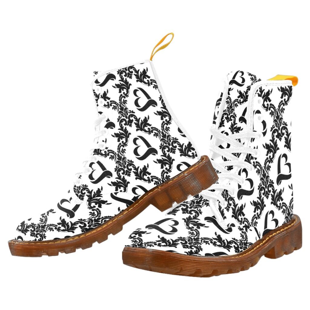 【Product Description】37.74 oz. Designed for fashion men, stylish and personalized.Made up of high quality canvas, be comfortable to wear.Translucent GUM RB outsole and Rear pull-loop make the boots durable in use and easily to put on.Lace-up floral combat boot featuring ribbed midsole and mesh foamed lining.