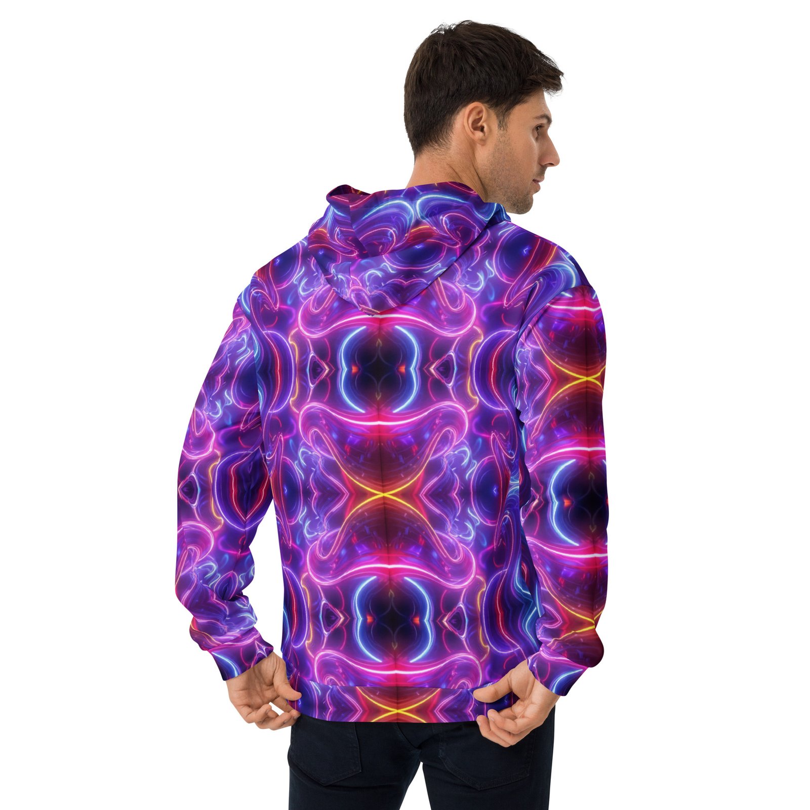 This comfy unisex hoodie has a soft outside with a vibrant print and an even softer brushed fleece inside. The hoodie has a relaxed fit, and it’s perfect for wrapping yourself into on a chilly evening.
